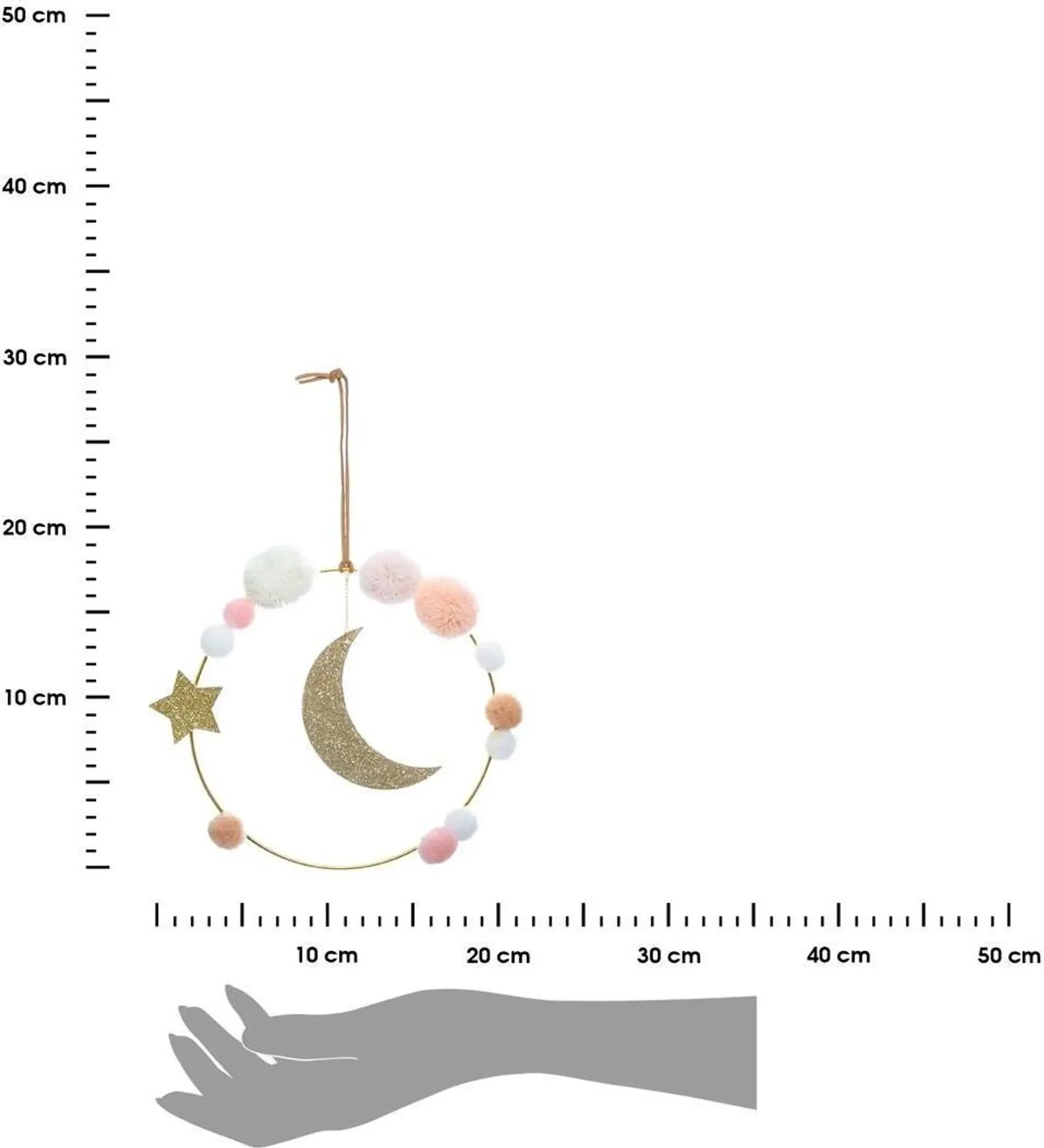 | Im Paket | 1 × Hängedekoration „Mond & Pompons“ |
