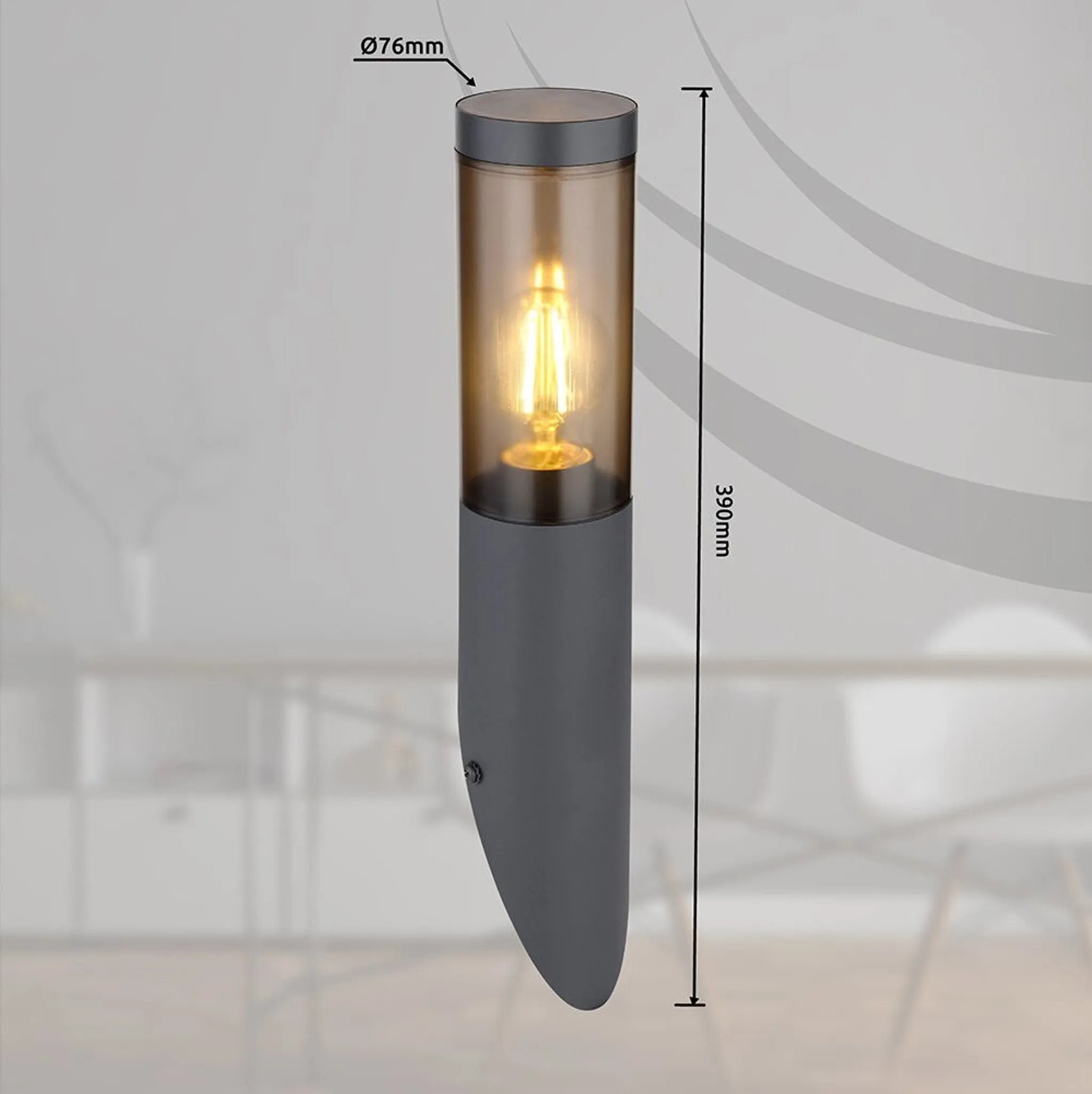 Highlights: Edelstahlgehäuse in Anthrazit, wetterfest (IP44), E27-Fassung für LED-Leuchtmittel, 23 W max., elegantes Design für Hauswand & Gartenbeleuchtung.