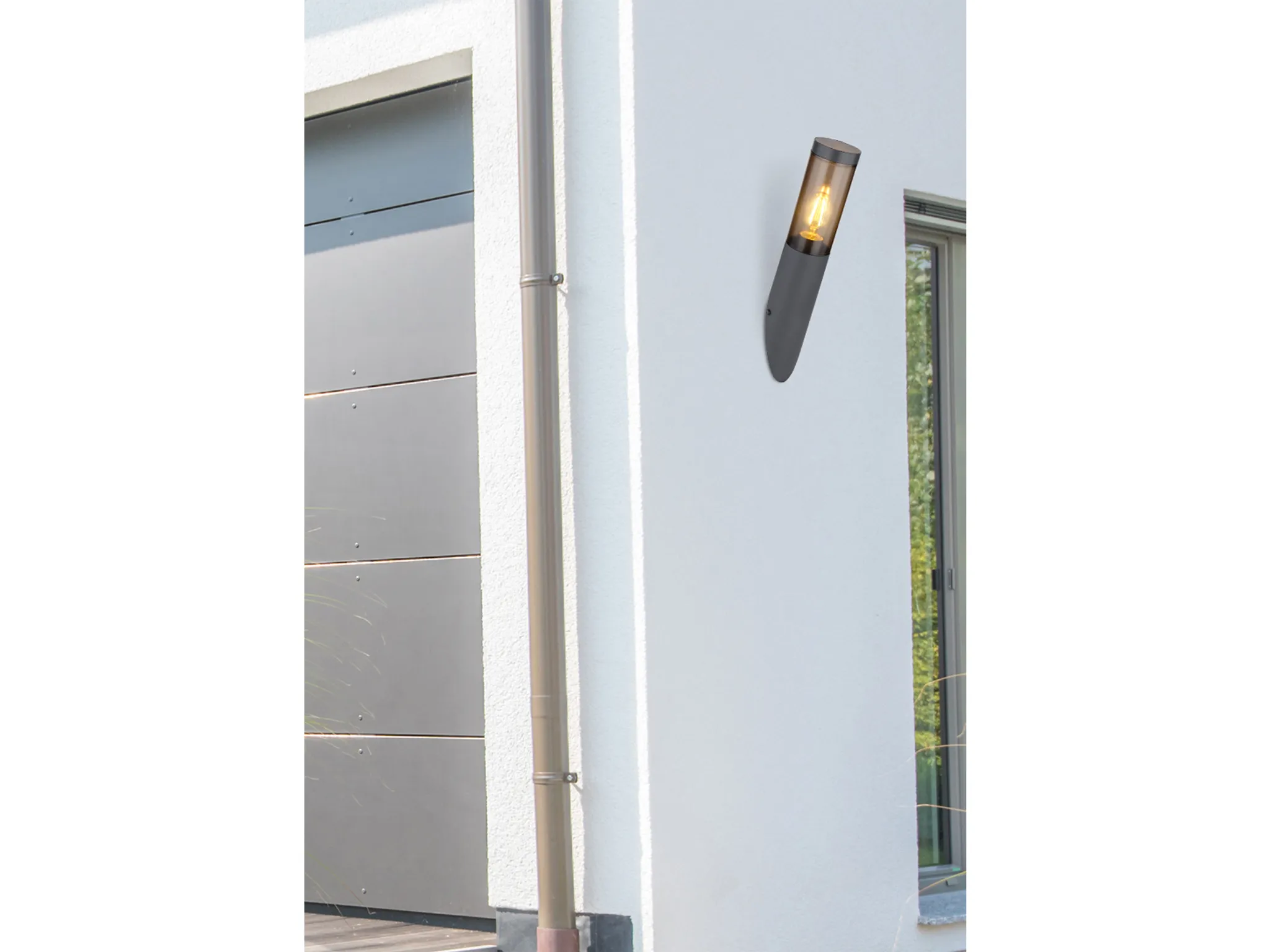 Moderne Edelstahl-Außenlampe • Witterungsbeständig (IP44) • Für E27-Leuchtmittel bis 23 W • Stilvolle Fassaden- und Terrassenbeleuchtung