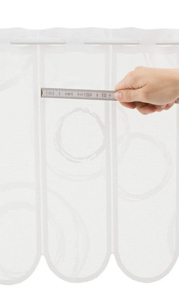 Die Gardine wird als Meterware angeboten: **Eine Einheit entspricht 11 cm Stoffbreite.** Dadurch können Sie die benötigte Breite frei bestimmen – ideal für Fenster jeder Größe. Die Gardine ist alle 11 cm schnittfest und kann nach dem Kauf auf Wunschmaß zugeschnitten werden. Für einen schönen Faltenwurf empfiehlt sich etwa die doppelte Deko-Breite.