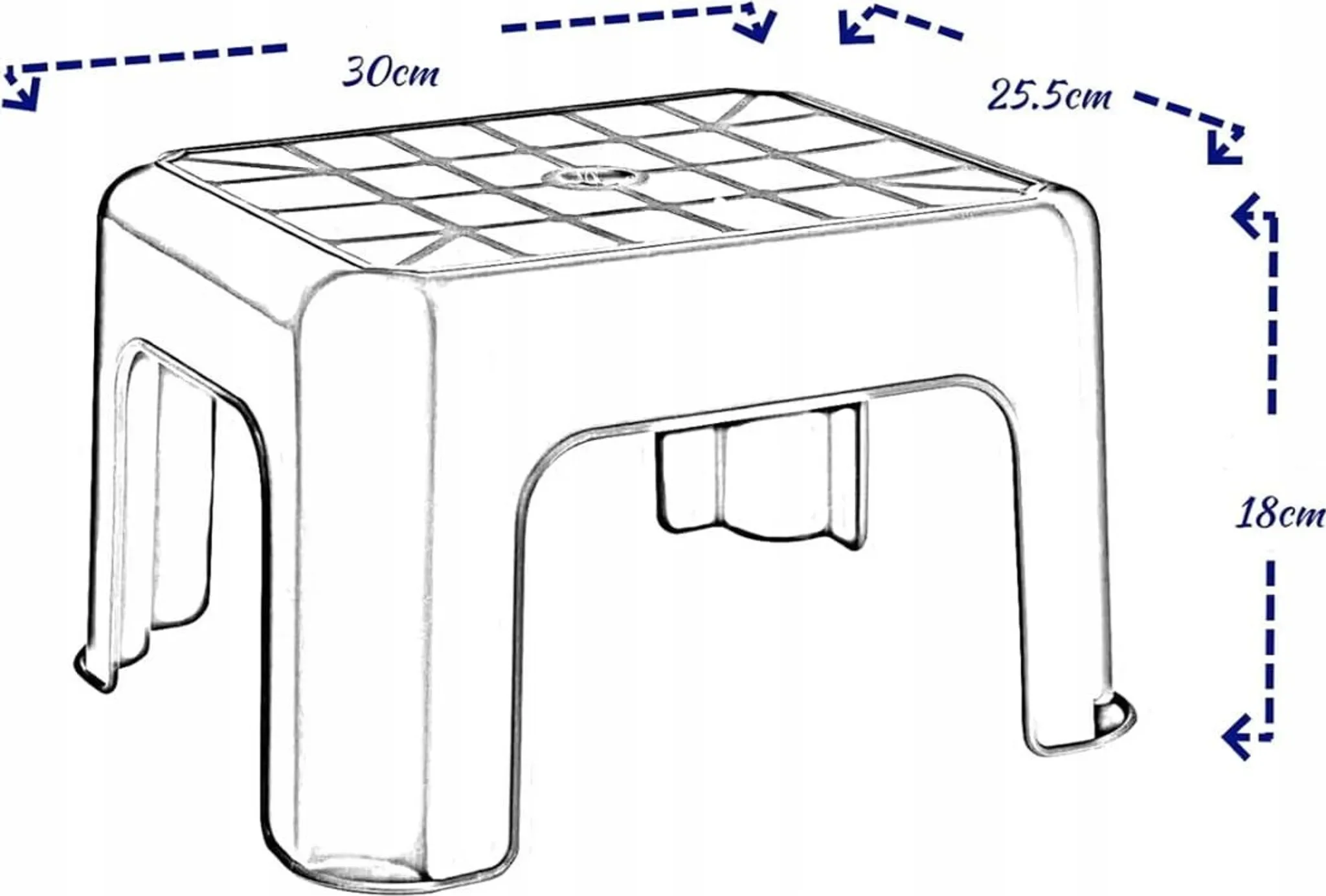 Dank ihrer kompakten Maße von 30 × 25 × 18 cm eignet sich die Fußbank ideal als Fußstütze, Tritthocker, Kinderhilfe oder niedriger Sitz. Sie ist leicht zu reinigen, feuchtigkeitsbeständig und sofort einsatzbereit – kein Aufbau erforderlich. Die Farbe wird zufällig aus dem Lagerbestand (Grün, Dunkelgrau oder Hellgrau) geliefert.