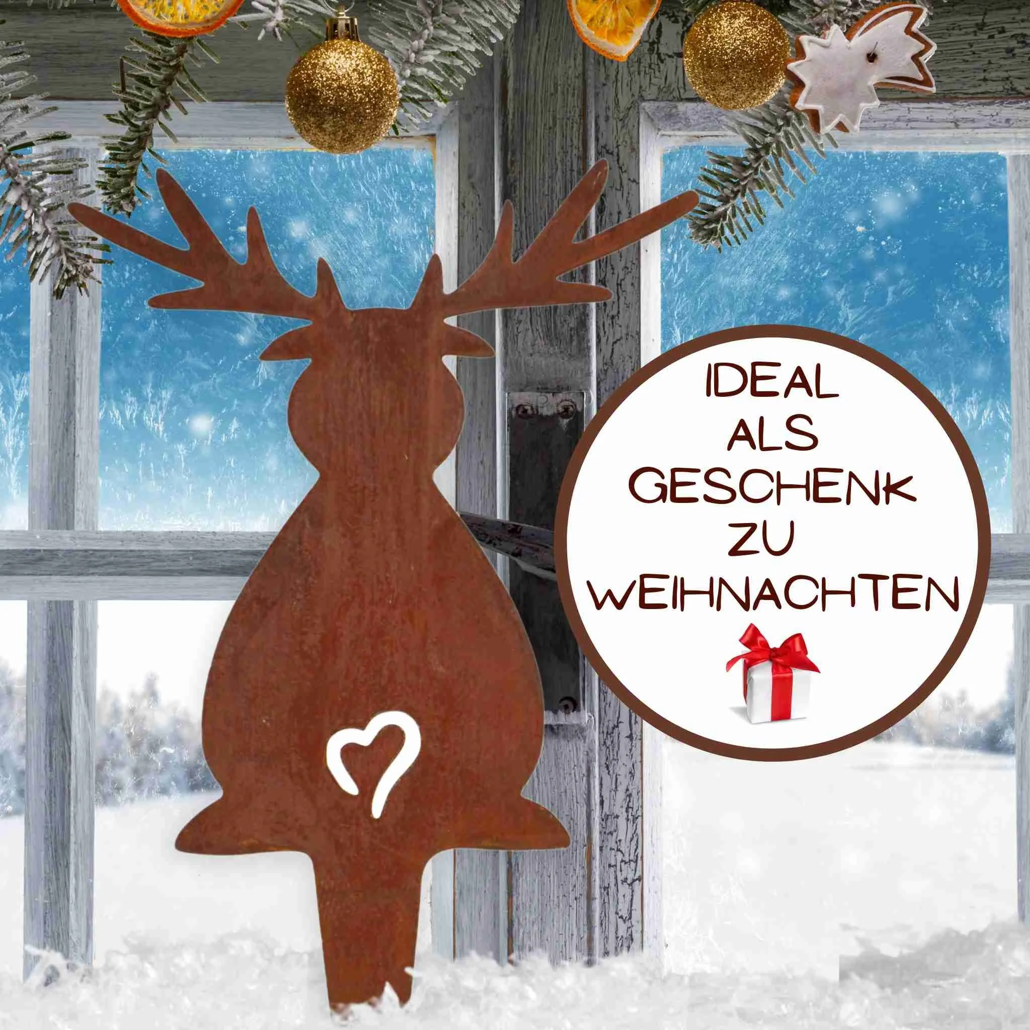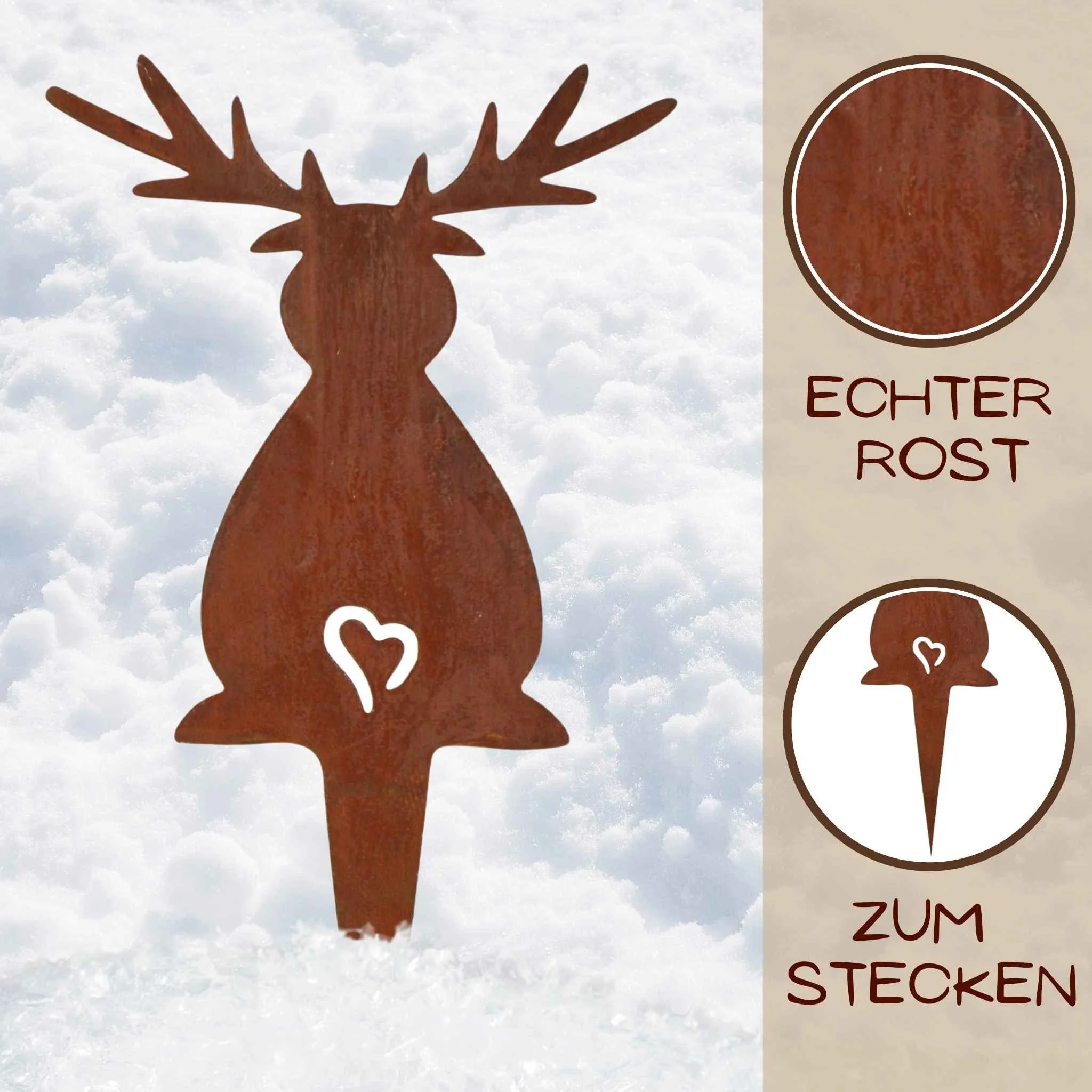 | Im Paket | 1 × Weihnachtsfigur „Elch“ aus Metall mit Edelrost-Finish (freistehend oder zum Stecken, je nach Auswahl) |