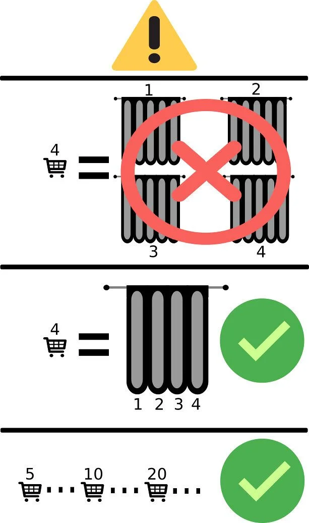 | Dekorationstipp | Für einen schönen Faltenwurf wird eine Stoffbreite von etwa dem 2-fachen der gewünschten Dekorationsbreite empfohlen. |