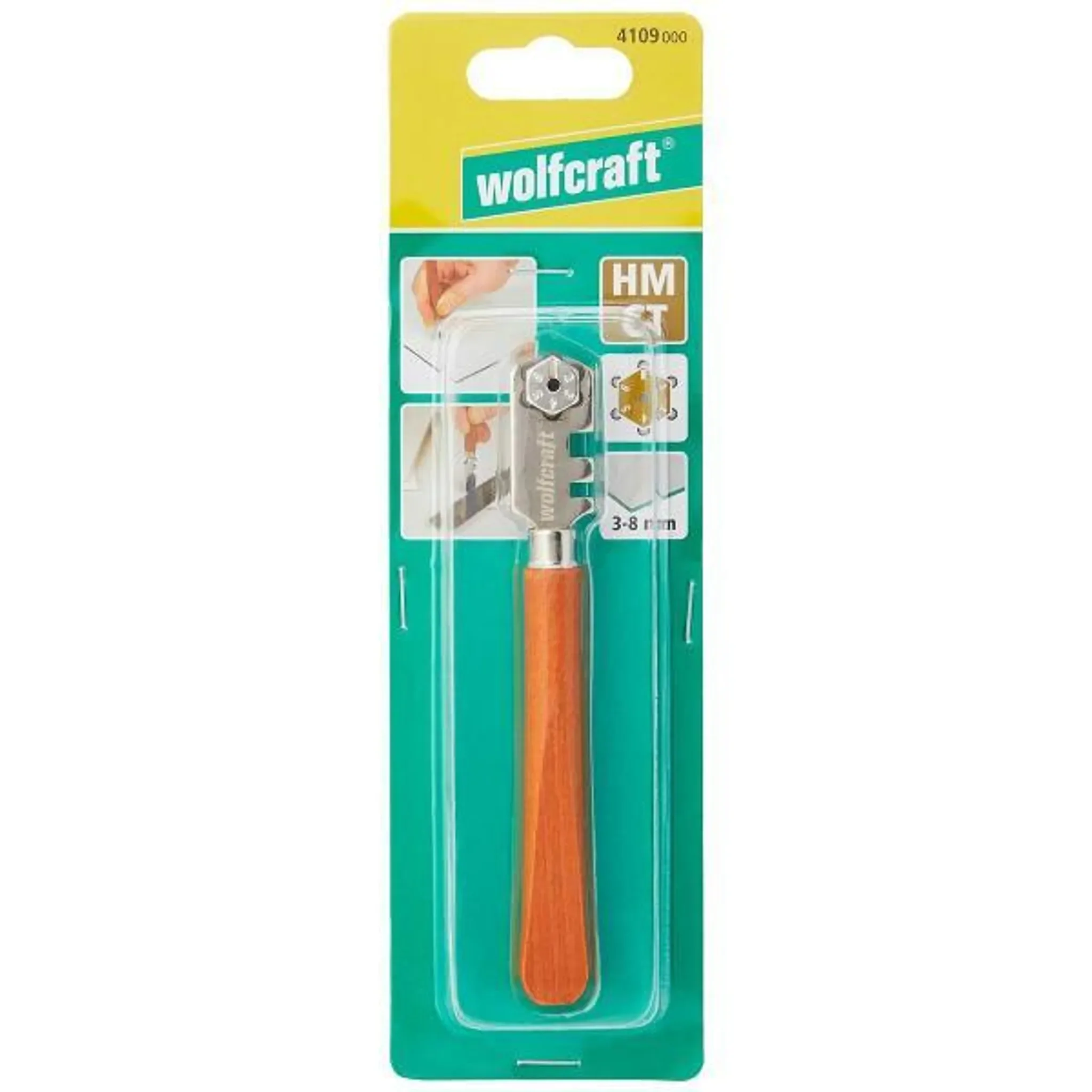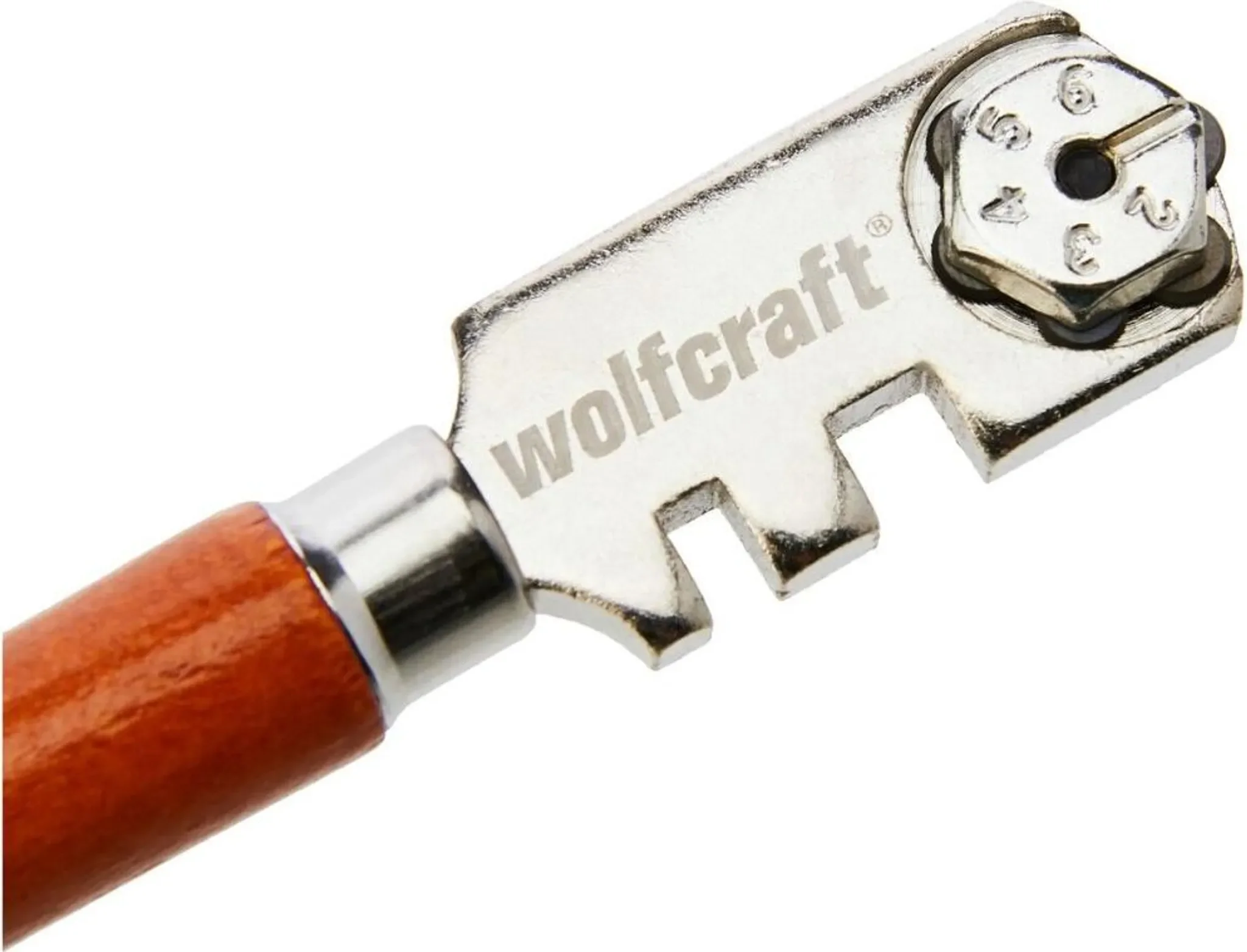 Produktinformationen "Wolfcraft 4109000 Glasschneider – Profi Glas- & Fliesenschneider mit Holzgriff und 6 auswechselbaren Hartmetall-Schneidrädchen"